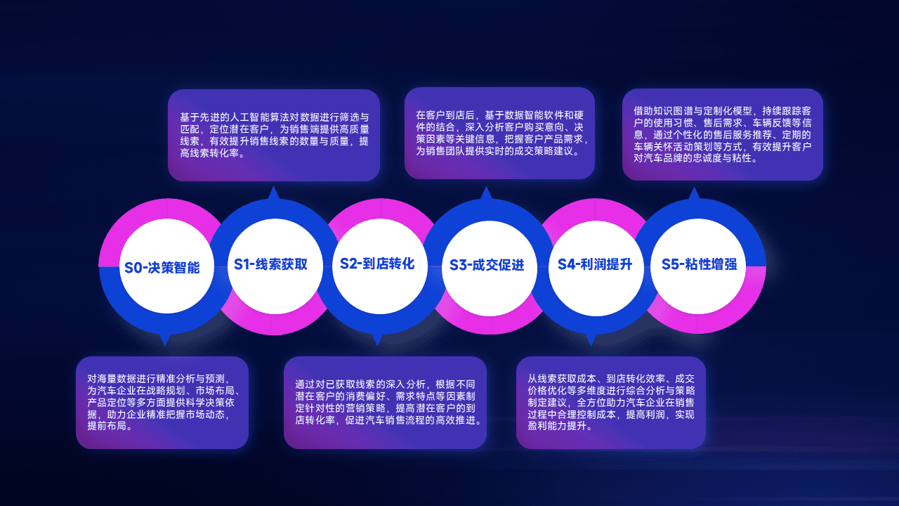 通过拓宽潜在客户来源、、、、优化线索分配并提高到店转化率,,,以增强销售效率。。同时,,,,利用线索数据不断优化分析模型,,有效提升转化率,,,扩大营销影响力。。。。